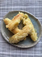 サクッと甘い柿の天ぷら 柿半分、小麦粉適量、コーンスターチ適量、塩適量、五香粉適量柿を一口大に切って種を取る。小麦粉8:コーンスターチ2に水を加える。柿に衣を付けて天ぷらにする。油切りしながら塩をふる。五香粉を添える。周りにサクッとした衣、中から甘〜い柿が美味しい天ぷらを五香粉の香りとともに味わえます。