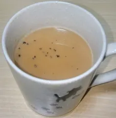 ゴールデンチャイ 体調改善を目的として毎日ゴールデンラテ、チャイなど飲んでます。ゴールデンラテ(ターメリックミルク)とチャイをかけあわせてみました。ターメリック、コリアンダー、クミン、ナツメッグ、ジンジャー、山椒(ここまではパウダー)レモングラス、自家製ピクリングスパイスを使用しました。ターメリックのクルクミンの吸収