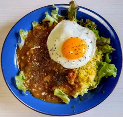 ターメリックライスのドライカレー💛 今日はお休みなので、ライスから気合い入れて作りました💛 美味しくできました😋