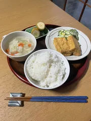 焼き厚揚げの朝ごはん おつとめ品の厚揚げを焼いて朝ごはんに食べました。厚揚げレシピは色々ありますが、やっぱり醤油と生姜が安定の美味しさです。安くて栄養がありお財布にも優しい厚揚げは我が家の味方です😊
