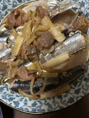 イワシのねぎ生姜梅煮 イワシをねぎと生姜はちみつ漬けの梅干しと炊きました☺️