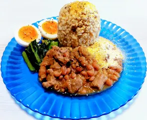 ポン ヂ アスーカル界隈の土曜のフェイジョアーダ🍛 棒砂糖に見立てた玄米ご飯に豚モツのフェイジョアーダをまとわせて食べた😀