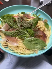 プランタバジル生ハムペペロン ペペロンは作ることが多いのですが、故に結構な期間お蔵入りになってしまっていたこちらを使いました。 そしておざなりプランターバジルとこれまたとっておきすぎた生ハムをちぎってパラパラして出来上がり。盛り付けも雑ですがなんだか良い雰囲気なお手軽ランチになりました。