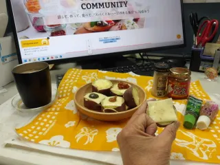 今季初の蒸かし「お芋」ランチ(アレンジ編) 今年も注文していました「五郎島サツマイモ」届きましたので会社ランチで食べました。炊飯器で蒸かします。(水150CC 白米炊き) ただし今回はホールのシナモンを忍ばせました。トッピングは、ホワイトペッパー・バジル・梅肉・トマト&オニオン ベースはバターでなく とろけるチーズ トッピング以外に「とろける