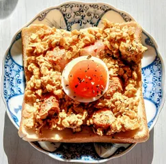 朝ごはん♡バジル&チーズのスクランブルエッグ