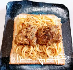 ソーキカレースパゲティサンド🙄 昨日作ったソーキカレーをパスタに和えてサンドウィッチ🙌