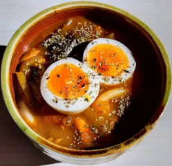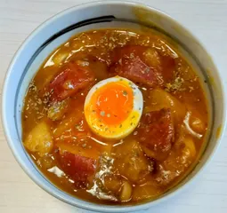 紅はるかでカレーうどん🍠 今朝7時のここは氷点下-2🥶夜中からスロークックしていた紅はるかにカレーを加えたら、甘辛塩っぱの微妙な風味に仕上がってしまった🥹
