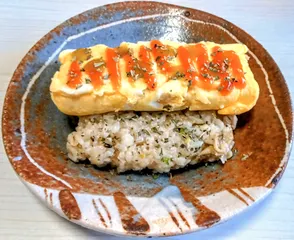 これはオムライス❔️親子丼❔️ だし巻き玉子をチキンライスに乗せてバジラせたらオムライス?親子丼?
