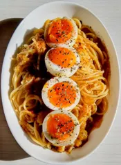 エッグカレースパゲッティ🍝 最近、玉子食べ過ぎかな……