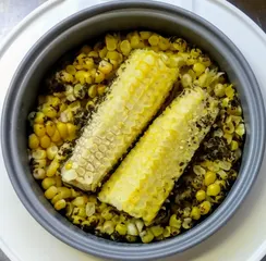 トウモロコシの炊き込みご飯とレンチン玉子焼き🥄