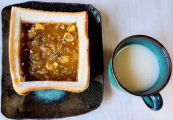久しぶりのパンカレー😄 ミッキーが入っていない、と思われる4枚スライスのパンで🐭