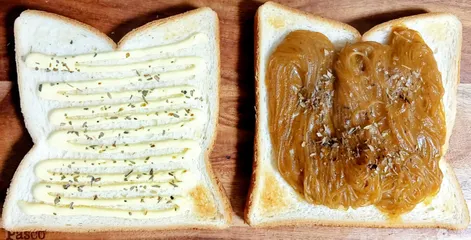 カレー春雨マヨトーストサンド⁉️ カットした際に中身がほぼはみ出てしまった…モリモリしてトーストしたのに、サンドしたらこんなに薄ーい😂