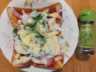 オレガノ薫るピザトースト 4月23日のスパイスのイロハオンラインを受講して、オレガノの使い方を体験したので、今日の朝食には、オレガノ薫るピザトーストを早速食べました。ただのピザトーストが、オレガノのおかげでまるで本格的なピザを食べているような満足感が得られ、素敵です。(o^―^o)ニコ