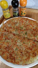 フライパンでハッシュドポテト じゃがいもは千切りスライサー?でザクザクおろす。水晒しはしないこと!じゃがいもに黒粗挽きコショウ、パウダーのカルダモンとナツメグを振って混ぜる==〉ハーブソルト使ったらいいかも!フライパンに有塩バターを溶かし、じゃがいもを投入したら広げて平らにならすフライ返しで全体押して、じっくり火を通す。こんがり