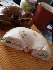 ベーグルサンド2種 しょっぱい系で生ハムと酒粕のクリームサンド。風味付けにホワイトペッパーも少々。甘い系でさくらんぼとベリーのサンド。 ハーフ&ハーフにして欲張り&後日のご飯で一石二鳥〜。 固めのベーグルだと噛みちぎる時に挟んだクリーム押し出てこぼしてしまいます⋯食べ方が下手で⋯(´