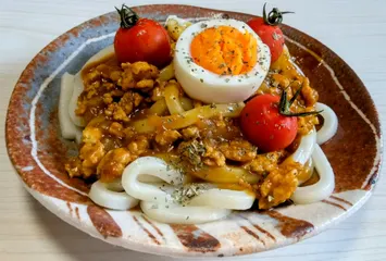 鶏ひき肉のカレーうどん👳 夏だ、暑いぞ、カレーだぁー😆