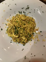 魚介のフレゴラ もともとパエリアにしようと思っていたのですが、パエリアのフライパンの取手が取れてしまったので笑、急遽フレゴラにしました! 魚介出汁がたっぷりと効いていて、にんにくとパセリもしっかり香りました。S&Bさんのサフランを使わせていただきましたが、綺麗な色だけでなく、にんにくやパセリにも負