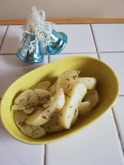 ポテトサラダをケーキ風の飾り付けで…ポテトは軽く塩胡椒で味付けし、最後にシザーサラダ風のドレッシングをかけてます。ドレッシングはマヨネーズ、ヨーグルト、酢、砂糖、粉チーズ、ニンニクチューブ、塩、ブラックペッパーなどで… 具材は上にのせて混ぜ込まないスタイルにしてます…またこの方がマヨネーズ