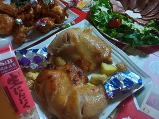 クリスマスの時のご飯! 今回のクリスマスは、生にんにくも沢山ありましたが、チューブでローストチキンレッグは作りました!