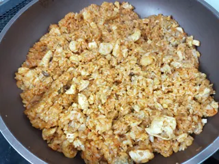頂き物のケイジャンシーズニングがあったので、初ジャンバラヤ。ピーマンとかなくて彩りは悪いですが美味しく出来ました😋