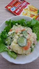 エスビーシーズニング韓国風チーズポテトを使ってポテトサラダを作りました。マヨネーズの量を減らし、チーズポテトシーズニングを加えて味付けし、盛り付け後に残りを振りかけました。チーズ&オニオンの風味が効いたコクがある美味しいポテトサラダが出来ました♪