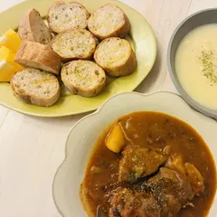 土曜日にクリスマスディナーを作りました。このあと大きいケーキが待っているので、今回は品数少なめにしました👀牛肉の煮込み料理を柔らかく仕上げるコツが知りたいです…🎅