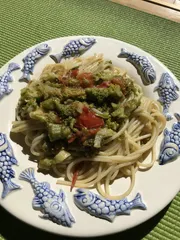 冷蔵庫野菜室のブロッコリーが、少し黄色味がかって来たので、ランチはパスタ湯を沸かし、よく洗ったブロッコリー投入5分ほど茹で、パスタを入れるその間に、フライパンに多めのオリーブオイル、ニンニク、プチトマト、セロリを入れて、適当に水を切ったパスタとブロッコリーを入れる。ブロッコリーはフライパンの中で、ヘ