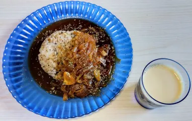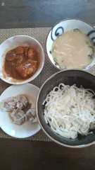 SB濃いシチューのもとでシチューを作りました。中身は、家庭菜園で採れたジャガイモ、人参、玉ねぎなどです。冷や汁での冷や麦との相性も、ばっちりでした。