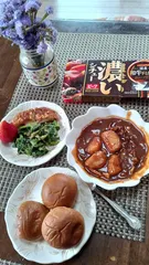 家庭菜園で採れたの玉ねぎ、人参、ジャガイモに牛肉、エリンギ、少々のケチャップと、最後に和牛ドミグラス濃いシチュー入れて作りました。今まで食べたシチューでは、一番美味しかったです。97歳と94歳のお年寄りが、美味しい美味しいと食べてました。さすがエスビーだねと言ってました。