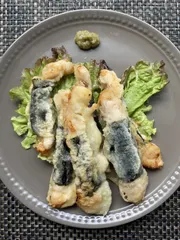 きざみレモンを衣に調理時間:10分■材料(2人分)2 本韓国ノリ 6枚小麦粉 適量エスビーきざみレモン 小さじ2エスビー柚子胡椒 小さじ1水 適量塩 適量■作り方鶏ささ身2本を縦に切って6本にして塩をふって韓国海苔を巻く。小麦粉を水で溶いたらきざみレモンを入れ、衣を作る。鶏ささ身に衣を付けて天ぷらに