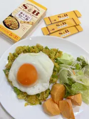 ドライカレー ワンプレートごはん。主役はドライカレー✨ 今まで赤缶を使っていたけど、最近は、スティックタイプがとっても便利でお気に入りです。
