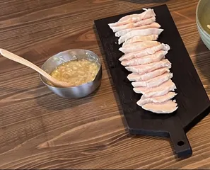 低温調理の鶏ハム。我が家の定番はねぎタレを合わせることです♪ ねぎ、塩、ごま油、ブラックペッパーを混ぜたら出来上がり。このタレがあると、さらにお箸が進むんです!