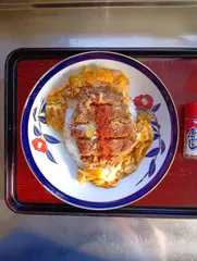 三元豚使用極厚とんかつぶ厚くてやわらかい豚ロース肉です。 かなり 本格的 「カツ丼」 完成しました! 「カツ丼協奏曲第1番 サン短調作品目録20」 【材料】たまご(M) 3個たまねぎ(小) 2個とんかつ(大) 1枚(三元豚ロース肉)[御惣菜] 【