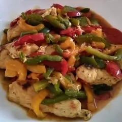 いろ鶏炒め いろ鶏炒め🐣鶏のむね肉に下味をつけ、焼き色が付いたら取り出しますパプリカを炒めてから鶏肉を戻してカレー粉・オイスターソース・醤油で味を付けたらできあがり具:鶏むね肉1枚・パプリカ(冷凍)肉の下味(片栗粉・にんにく・生姜・ハチミツ・ブラックペッパー・酒)カレー粉・オイスターソース・醤油 白い