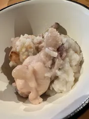 今日の夕食。もう何回作ってるか分からないくらいリピしてるレシピです。スパイスを使っていないメニューなので、フォトレポートにアップしてみました!山本ゆりさんの「とろとろサムゲタン風スープ」です!材料は手羽元、お米、白ネギ、生姜、ニンニク。調味料は料理酒、ごま油、塩。これらを炊飯器にぶち込んでスイッチ押