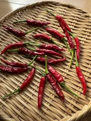 たくさん採れる鷹の爪 全て収穫 前回収穫した時には、まだ赤く色づいて無かったので収穫せず残していた9本。悪天候が続きそうだったので、全て収穫し乾燥へ さてこの後、たくさん採れる鷹の爪は再び開花さるのかこのまま終了なのか…しばらく見守りたいと思います。
