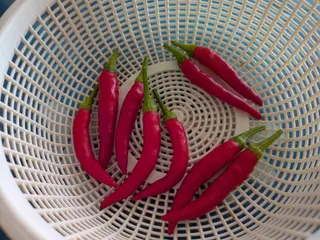 赤唐辛子🌶収穫です! 9月も終わりに近づいたので今なっている赤唐辛子を全部収穫しました🌶シワシワになってしまっているものもありますが、これは収穫が遅かったのかなぁ🤔ザルに拡げて乾燥しまーす🙋♀️