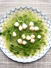 豆苗とホタテ貝柱の鶏がらスープあん