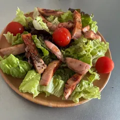 サラダにオリーブオイルとレモン汁♪仕上げにブラックペッパーをたーっぷり♪ ピリッとおいしくいただきました。ごちそうさまでした。