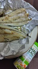 かますにマジックソルト ホイルのままで写真撮りましたが、大分のかますを焼いてマジックソルトかけました。