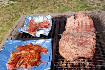 バーベキュー バーベキューにて肉を焼く。塩とブラックペッパーでワイルドに。それが1番美味しいです。
