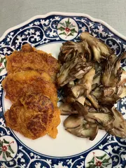 人参・大根・蓮根をおろし水分を切り、クミン、片栗粉を混ぜて焼き、最後に醤油を少したらしました。付け合わせは舞茸のソテー レシピ診断でキャロットラぺにクミンとあったので、使ってみました。
