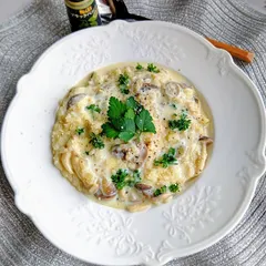 きのこのリゾット マガジンでパセリの話があがったので・・・今日のお昼はマッシュルームとしめじと玉ねぎを使った豆乳リゾットを作りました。お米からでなく、昨夜の残りごはんを洗って時短リゾットです。ブラックペッパーと粉チーズをたっぷりかけました。パセリは昨年鉢に植えたもので外で放置していたのですが😅冬を越して今大きくなって