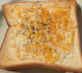 大きな目玉焼きを乗せたパン。まずはマヨネーズをパンに塗ってトースト。目玉焼きをのせます。最後にブラックペッパーで味を整えて完成です。 写真だと、マヨネーズがチーズに見える。チーズでも美味しそう…