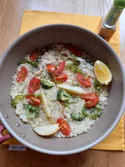 真鱈のバジルソースと言う冷凍素材を半額で買え、早速パエリアにしました。サフランで色付け、ニンニク、玉ねぎ、ミニトマト、ピーマンを加えました。バジルソースに元々入ってたブロッコリーとポテトも美味しくいただきました。バジルとブラックペッパーをトッピング。