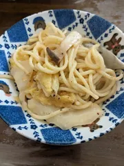 ランチ 白菜を使って、クリームパスタ。黒胡椒が引っ張りだこです。