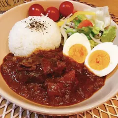 家族みんな大好きな牛スジカレー!水は使わず野菜の水分とトマト缶で作ります。玉ねぎとセロリのみじん切りをたくさん入れます。ルーはゴールデンカレーの中辛と辛口を組み合わせるのが好き♡
