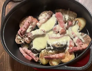 じゃがいも、なす、ベーコンをグリル調理♪チーズを入れて焼きます。 仕上げにはバジルをかけました!