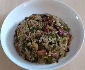 今日のお昼「スパイシーチャーハン」暑い時はなぜか?スパイシー味に走ります。 具:ウインナー・ピーマン・サラダ豆・ご飯味:ガラムマサラ・にんにく醤油・ブラックペッパー・中華だし具を炒めてからガラムマサラを入れ更に炒め、ご飯を入れて中華だし少々・ブラックペッパー少々入れ炒め最後にニンニク醤油を