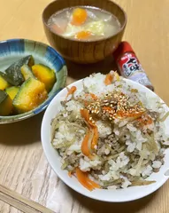 混ぜご飯の朝ごはん 2/16(日)の朝ごはんは、、 きんぴら風の混ぜご飯野菜スープかぼちゃの煮物バナナ でした。ごぼうとにんじんとひき肉をきんぴら風の味付けで炒めて、ご飯と混ぜた混ぜご飯。我が家の大好物です。七味がよくあいます